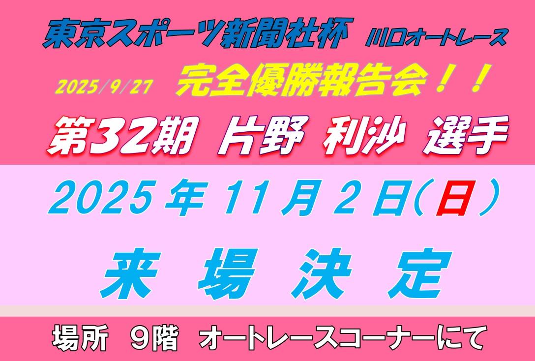 来る11月2日(日)に片野利沙選手がサテライト横浜に来場致します!