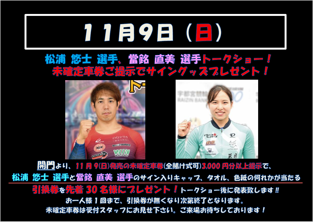未確定車券抽選会にもご参加頂けますので是非ご来場下さい!!