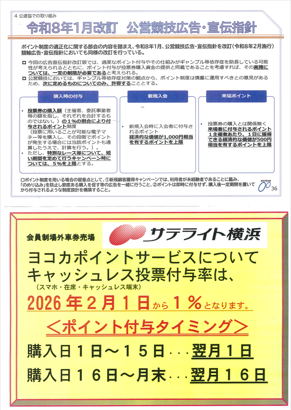 2月1日からヨコカポイント付与について変更がございます。 特に付与されるタイミングについて大きな変更がございますので 皆様ご確認頂くようお願い致します。 ← 【サテライト横浜】1/25(日)競輪YouTubeチャンネル「Hidekazuの競輪channel」撮影会 &予想会開催!!
